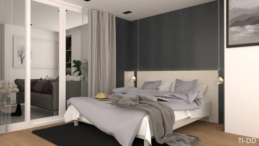 • 1 ห้องนอน | 1 ห้องน้ำ | ห้องนั่งเล่น+ครัว | ระเบียงอินดอร์กั้นห้อง